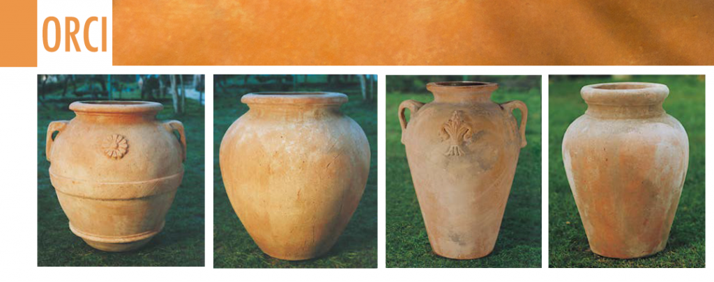 Le anfore, i vasi e gli oggetti della ditta OLIMPIA, tutti su disegno dei titolari, costituiscono un raffinato richiamo a forme e colori del passato e, grazie ad un originale procedura d’invecchiamento, si rivestono di una patina ricca di fascino.